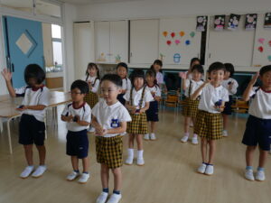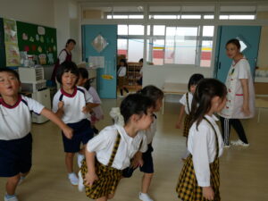 5才児(ほしぐみ・つきぐみ)のリトミックの様子です😊╰(*°▽°*)╯
