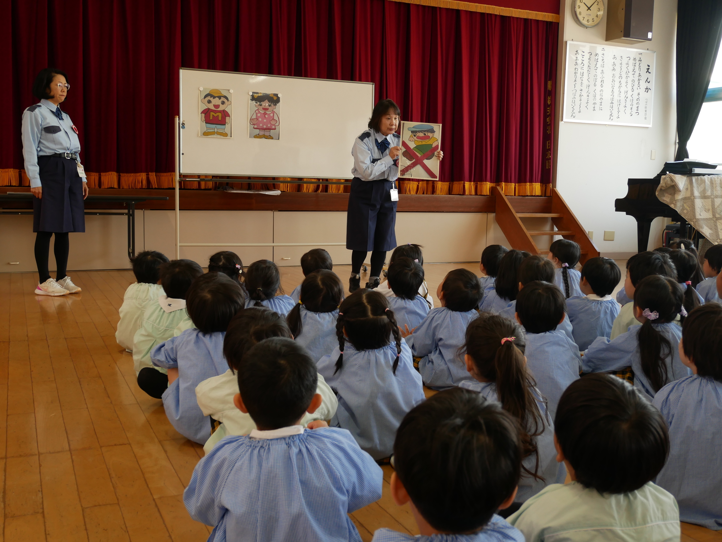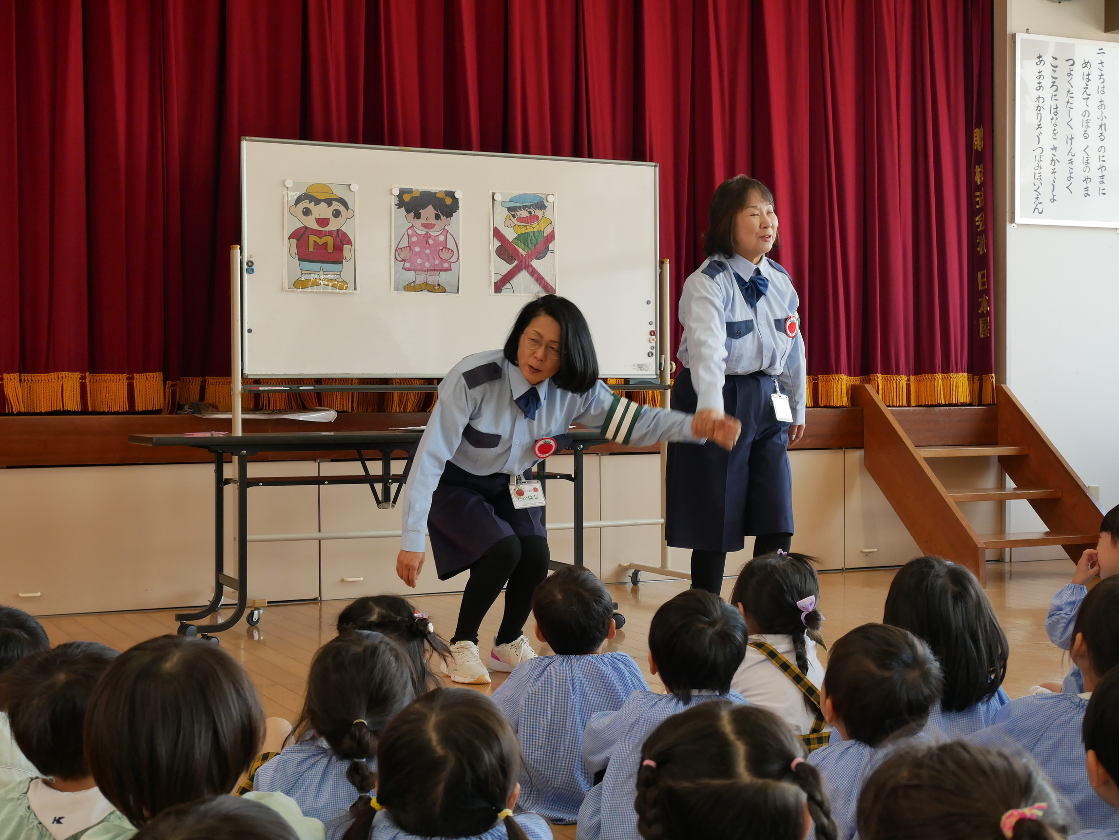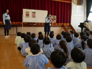 今日は3才~5才児対象に交通安全教室がありました。歌🎵を歌ったり、腹話術、実際に横断歩道を渡る練習などの練習もさせていただきました😆