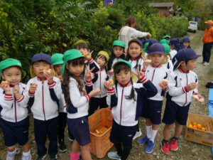 11月12日(水)、年長さんのほしぐみさんとつきぐみさんがお弁当を持ってみかん狩り🍊にお出掛けしました🚌近くの公園でみんなで一緒に食べたお弁当とっても美味しかったです✨